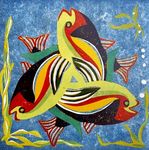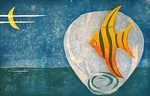 1997vis gevangen in een kom,verlangend uitziend naar de maan
